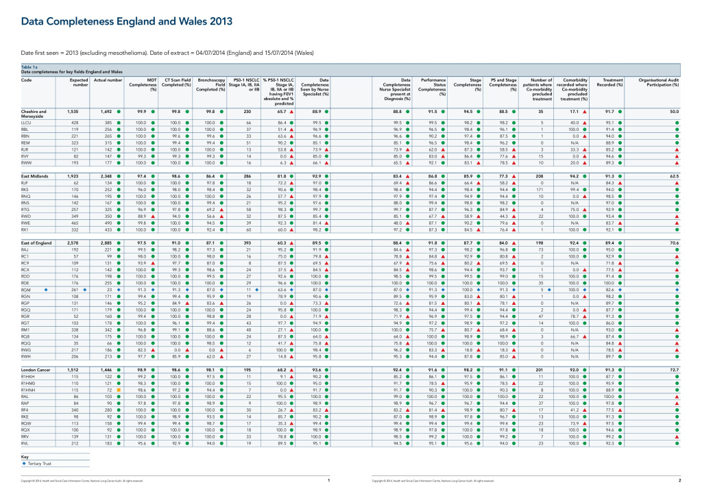 National lung cancer audit – data completeness table 2014 National Lung Cancer Audit (NLCA), National Cancer Audit Collaborating Centre (NATCAN) 30 Dec 2015 Data completeness England and Wales Download About the programme About the programme