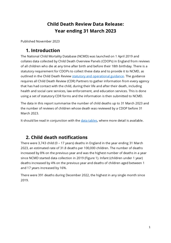 The National Child Mortality Database (NCMD) has published the Child Death Review Data Release for...